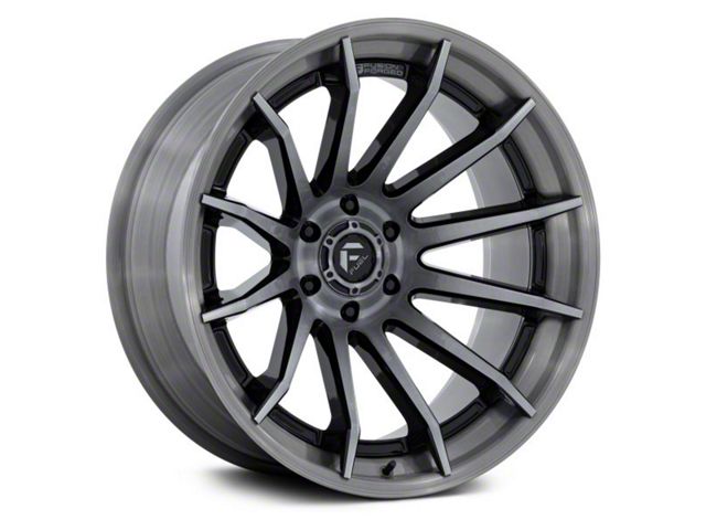 Fuel Wheels Fusion Forged Burn Gloss Black with Brushed Gray Tint Face and Lip 6-Lug Wheel; 24x12; -44mm Offset delivers a bold and modern aesthetic, ideal for enthusiasts seeking a refined yet assertive look for their vehicle. With its standout design and distinct finish, this wheel enhances the vehicle's visual stance and street presence. The precise craftsmanship and premium aluminum build reflect Fuel Wheels' dedication to quality and distinctive design. Whether parked or in motion, this wheel draws attention with its clean, aggressive styling.