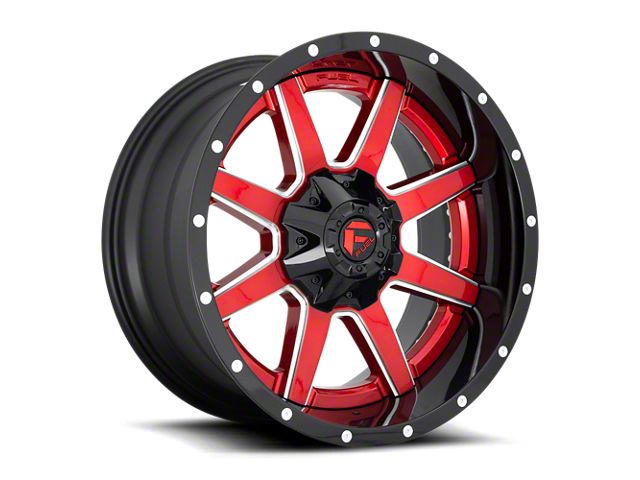Fuel Wheels Maverick Gloss Red Milled 6-Lug Wheel; 22x12; -44mm Offset delivers a bold and modern aesthetic, ideal for enthusiasts seeking a refined yet assertive look for their vehicle. With its standout design and distinct finish, this wheel enhances the vehicle's visual stance and street presence. The precise craftsmanship and premium aluminum build reflect Fuel Wheels' dedication to quality and distinctive design. Whether parked or in motion, this wheel draws attention with its clean, aggressive styling.
