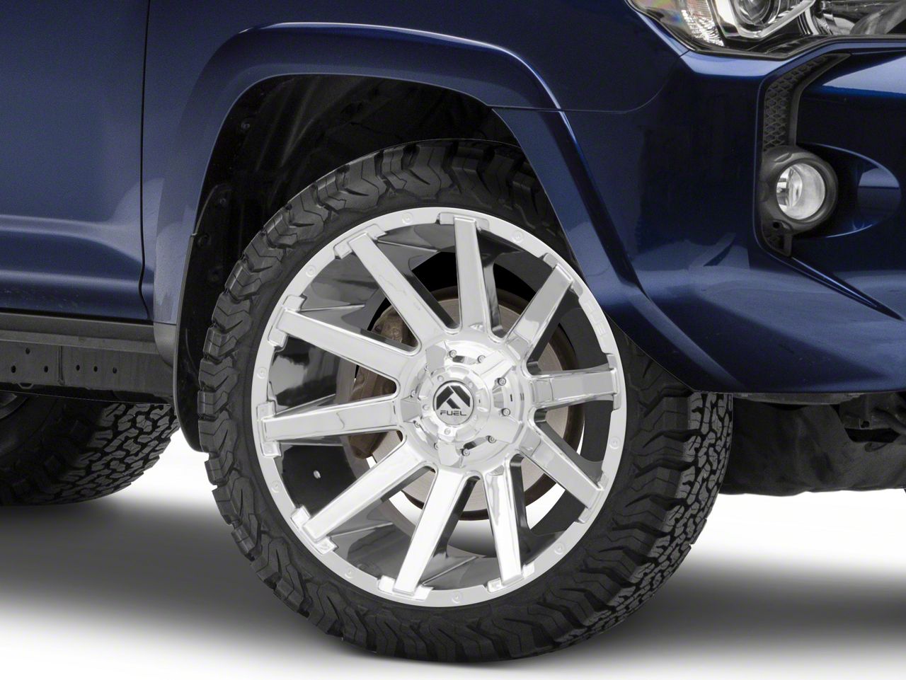 Application. This Fuel Wheels Contra Chrome 6-Lug Wheel; 22x10; -19mm Offset, with a backspace of 4.752 Inch, 120.7mm and bolt pattern of 6 x 139.7mm (6 x 5.5-Inch), is designed to provide not only a striking visual appeal but also to contribute significantly to the alignment and driving stability of the vehicle. Its specifications ensure a precise fit with the vehicle model, enhancing the overall driving experience. Built to fit the 2010-2024 4Runner, this wheel is sold individually.