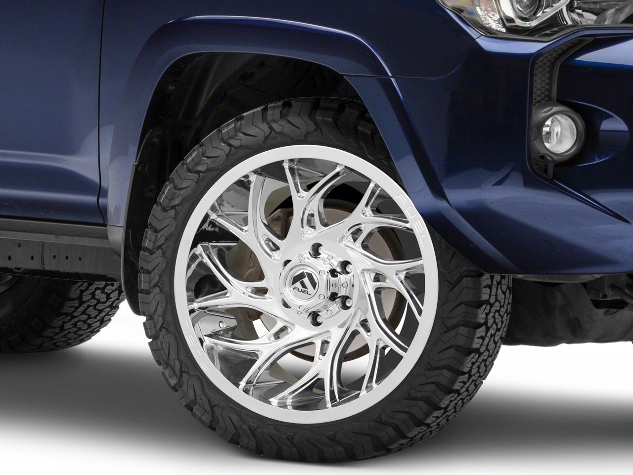 Application. This Fuel Wheels Runner Chrome 6-Lug Wheel; 24x12; -44mm Offset with a backspace of 4.768 Inch, 121.2mm; and bolt pattern of 6 x 139.7mm (6 x 5.5-Inch), contributes to alignment, driving stability, and ensures a perfect fit with the vehicle model. Designed to fit the 2010-2024 4Runner. Sold individually.