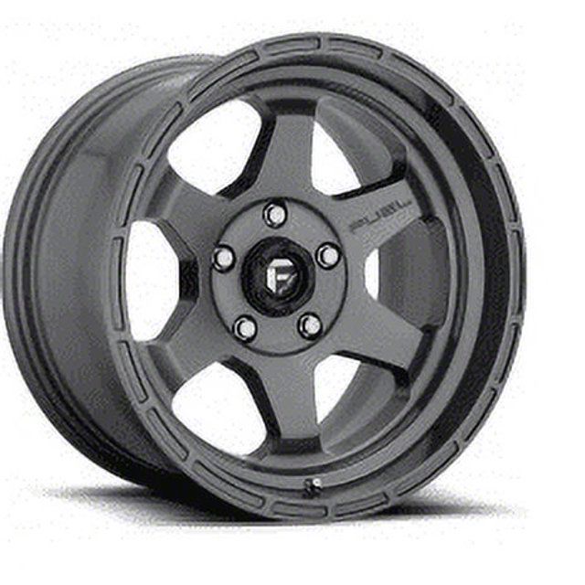 Fuel Wheels Shok Textured Anthracite 6-Lug Wheel; 17x9; 1mm Offset exudes sophistication with its finish, offering a sleek and modern appeal to any vehicle it adorns. The design is meticulously crafted to enhance the aesthetic of your vehicle, giving it a distinctive and upscale look. Perfect for those seeking to elevate their vehicle's style, this wheel blends seamlessly with both contemporary and classic vehicle designs, making it a versatile choice for a wide range of vehicles. Its robust construction ensures durability, making it a reliable choice for drivers who value both style and quality.