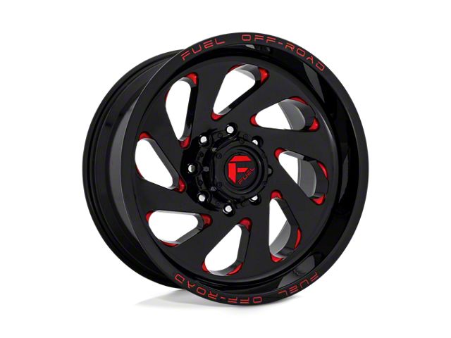 Fuel Wheels Vortex Gloss Black with Red Tinted Clear 6-Lug Wheel; 20x10; -18mm Offset The Fuel Wheels Vortex Gloss Black with Red Tinted Clear 6-Lug Wheel combines a sleek, sophisticated design with premium construction that enhances the visual appeal and complements a wide range of vehicle styles. This wheel is perfect for those seeking to make a bold statement while maintaining elegance and robustness.