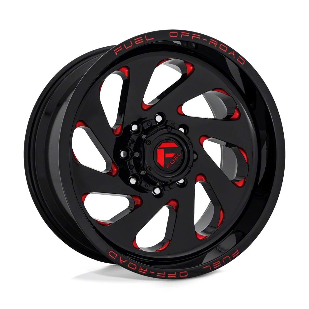 Fuel Wheels Vortex Gloss Black with Red Tinted Clear 6-Lug Wheel; 20x12; -45mm Offset The Fuel Wheels Vortex Gloss Black with Red Tinted Clear 6-Lug Wheel combines a sleek, sophisticated design with premium construction that enhances the visual appeal and complements a wide range of vehicle styles. This wheel is perfect for those seeking to make a bold statement while maintaining elegance and robustness.