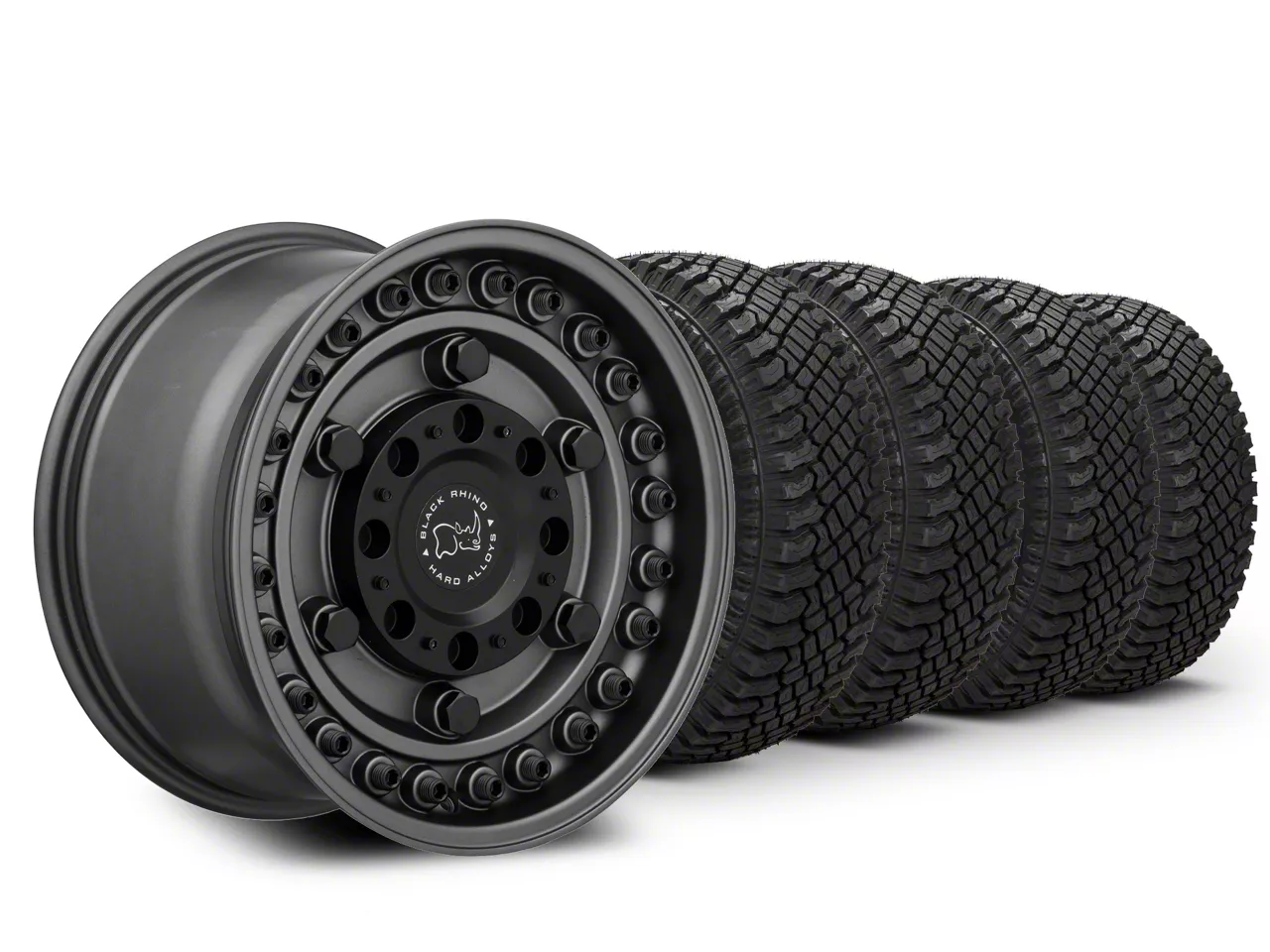 Gunblack Black Rhino Armory Wheel. Black Rhino's Armory Series Wheel features a military-style inspired design with simulated hardware accents around the face for rugged good looks. This Wheel is completed in a high quality, clear coated, gunblack finish for an aggressive appearance that can withstand the hazards of everyday driving - including road chips and pitting.
