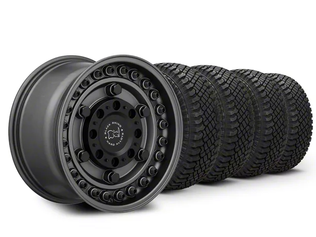Mounted and Balanced Wheel and Tire Kit. This wheel and tire combo kit features (4) 17x9 Black Rhino Armory Gunblack Wheels and (4) Atturo Trail Blade X/T Multi-Terrain 35" - 35x12.50R17 tires that have been put together into an easy to buy kit that arrives to your door already mounted and balanced ready to be installed on your vehicle.