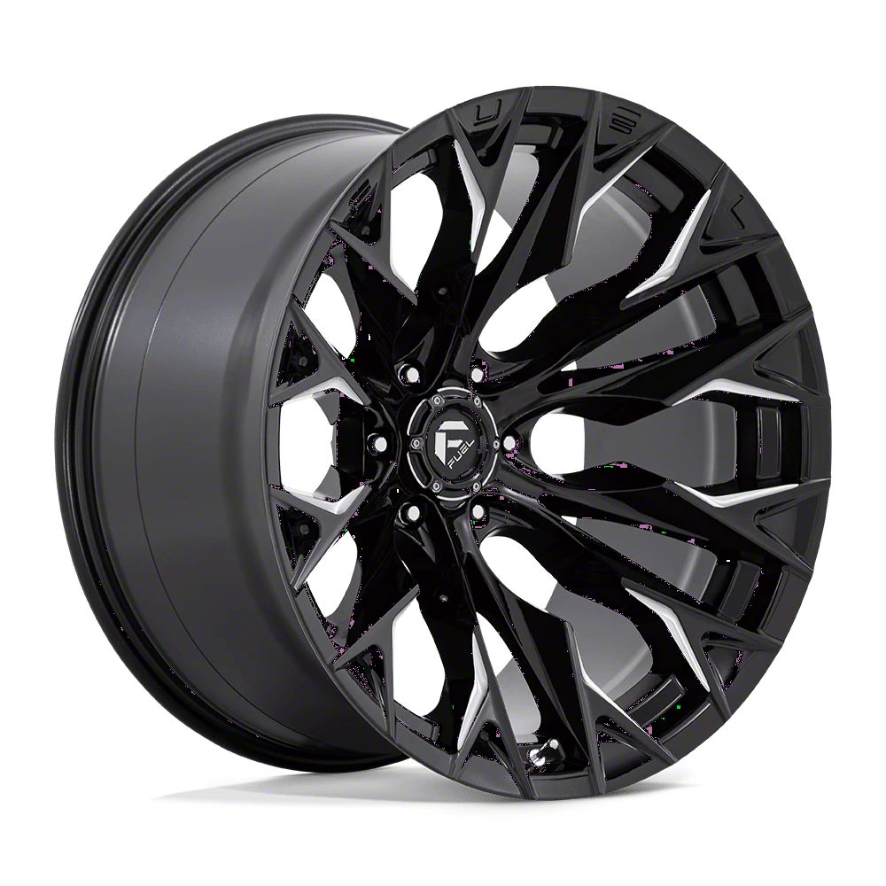 Fuel Wheels Flame Gloss Black Milled 6-Lug Wheel; 22x12; -44mm Offset The Fuel Wheels Flame Gloss Black Milled 6-Lug Wheel combines a sleek, sophisticated design with premium construction that enhances the visual appeal and complements a wide range of vehicle styles. This wheel is perfect for those seeking to make a bold statement while maintaining elegance and robustness.