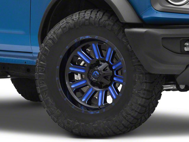 Application. This Fuel Wheels Hardline Gloss Black with Blue Tinted Clear 6-Lug Wheel; 18x9; 2mm Offset, with a backspacing of 5.079 Inch, 129mm; and bolt pattern of 6 x 139.7mm (6 x 5.5-Inch), is designed to fit the 2021-2025 Bronco, excluding the Raptor. Sold individually.