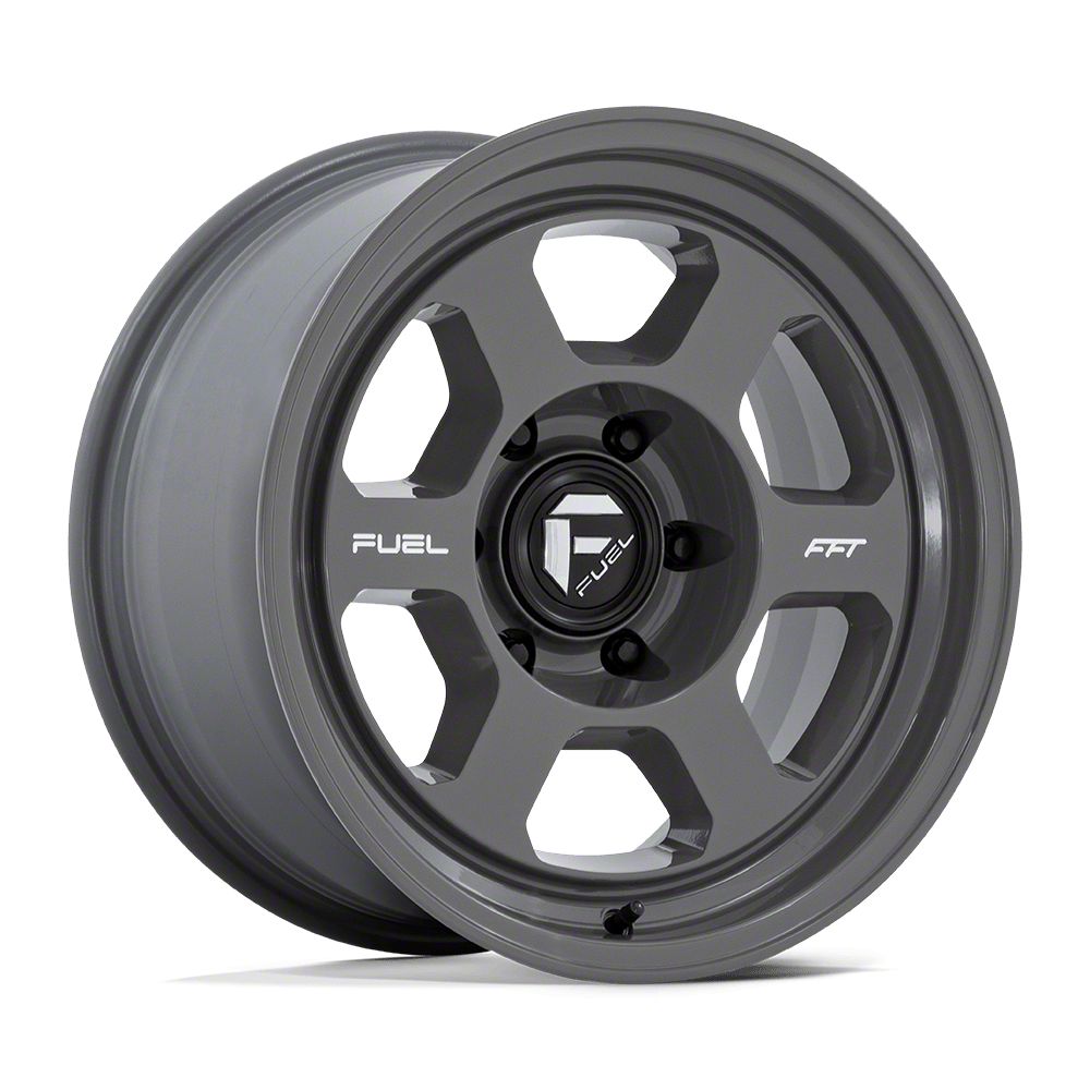 Fuel Wheels Hype Battleship Gray 6-Lug Wheel; 17x8.5; 10mm Offset offers a striking balance between style and durability. The design speaks to the brand's commitment to quality, enhancing the vehicle's appearance with its distinct look. This wheel, with its unique aesthetics, is ideal for drivers who appreciate a blend of modern design and robust functionality.