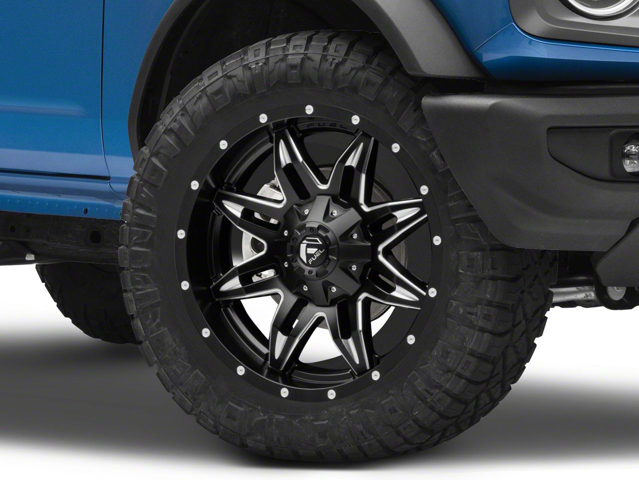 Application. This Fuel Wheels Lethal Satin Black Milled 6-Lug Wheel; 20x10; -12mm Offset with a backspace of 5.028 Inch, 127.8mm; and bolt pattern of 6 x 139.7mm (6 x 5.5-Inch) contributes to impeccable alignment and driving stability. Designed to fit 2021-2026 Bronco, Excluding Raptor models, sold individually.