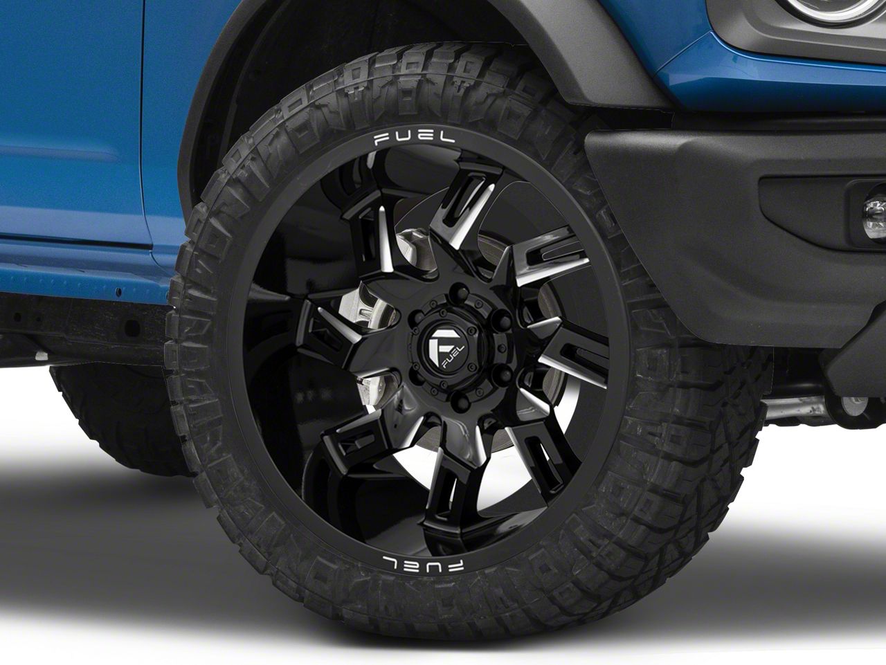 Application. This Fuel Wheels Lockdown Gloss Black Milled 6-Lug Wheel; 22x10; -18mm Offset, with a backspace of 4.792 Inch, 121.8mm and bolt pattern of 6 x 139.7mm (6 x 5.5-Inch), ensures proper alignment and stability. It's designed to fit the 2021-2025 Bronco, Excluding Raptor models, enhancing both the look and the overall driving experience. Sold individually.