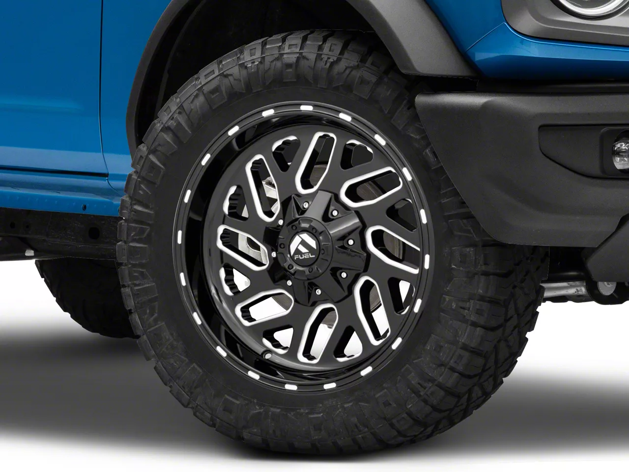Application. This Fuel Wheels Triton Gloss Black Milled 6-Lug Wheel; 20x10; -19mm Offset, with a backspace of 4.752 Inch, 120.8mm and bolt pattern of 6 x 135mm (6 x 5.31-Inch), ensures optimal alignment and driving stability. It is designed to fit 2022-2026 Bronco Raptor models. Sold individually.