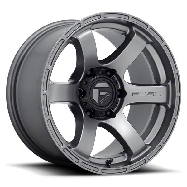 Fuel Wheels Rush Textured Anthracite 6-Lug Wheel; 17x9; 1mm Offset. The Fuel Wheels Rush Textured Anthracite 6-Lug Wheel offers a striking balance of style and refinement. Its unique design accentuates the vehicle's aesthetic, while the premium construction underscores its robust nature. This wheel is a perfect choice for those seeking both elegance and a strong visual statement.