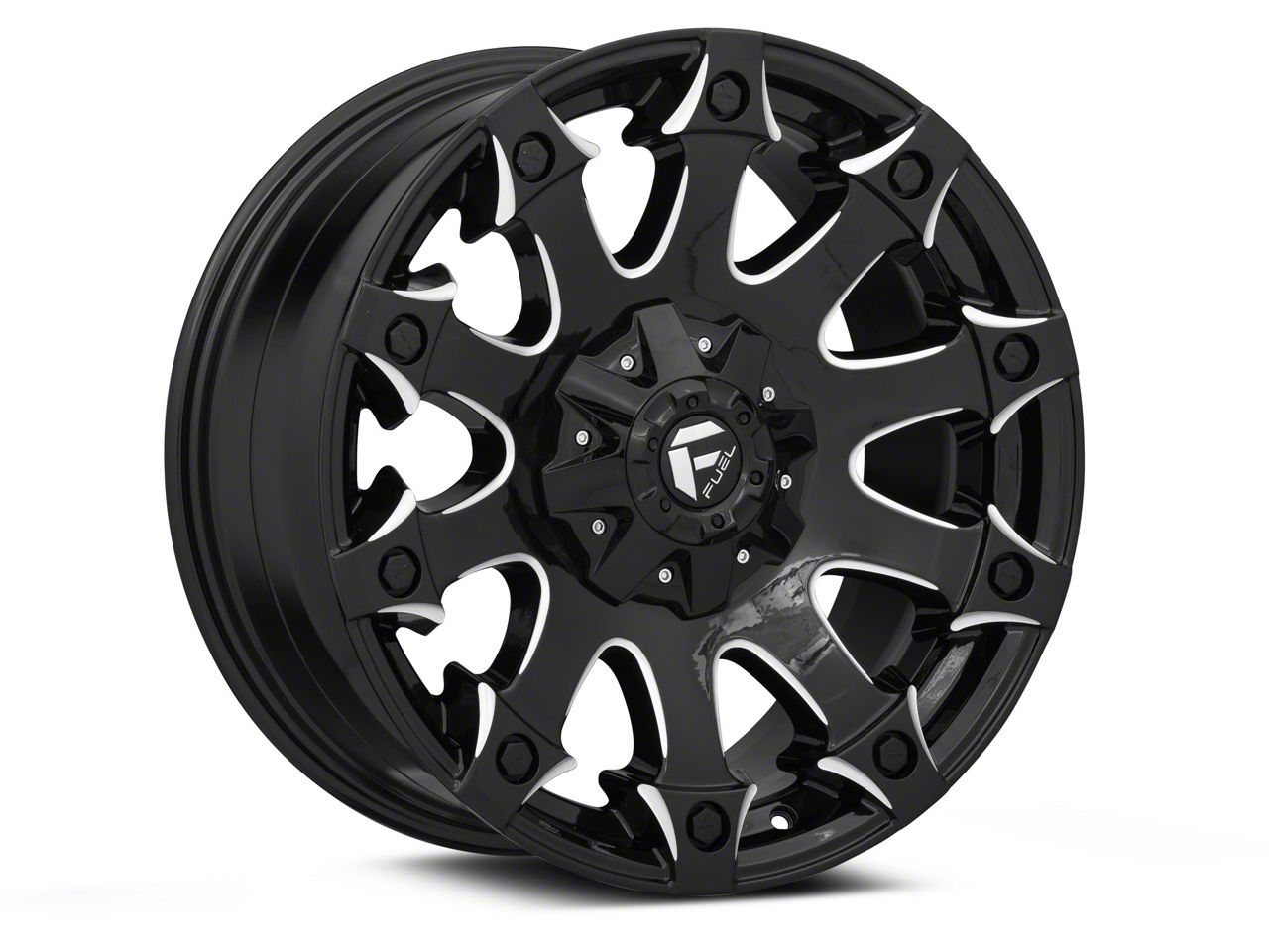 The 20x9 Fuel Wheels Battle Axe Gloss Black Milled Wheel is given a gloss black finish to keep your wheel looking as sharp as its design. This wheel’s milled steel accents are where it really shines through, and quite literally.