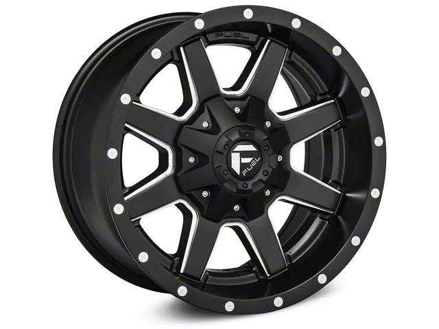 This 17x9 Fuel Wheels Maverick Matte Black Milled Wheel is completed in a high-quality matte black finish with steel milled accents that will create a striking appearance. There's a durable clear coat that protects against driving hazards.