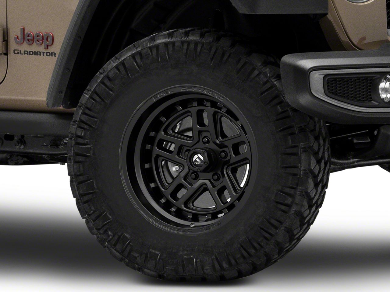 Application. This Fuel Wheels Nitro Matte Black Wheel; 17x9 with a backspace of 4.528 Inch, 115.1mm and bolt pattern of 5 x 127mm (5 x 5-Inch) ensures impeccable alignment and unmatched driving stability. Specifically designed for 2020-2025 Jeep Gladiator JT models, each wheel is sold individually.