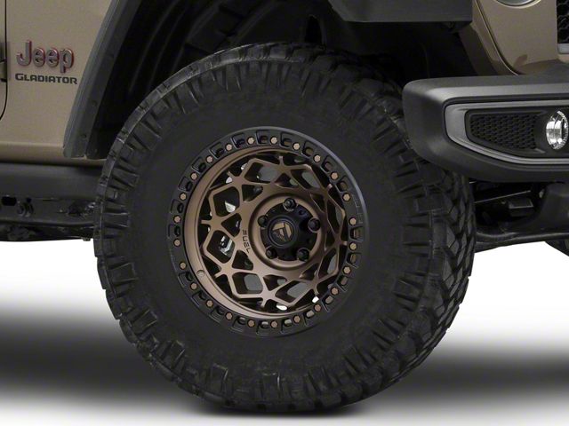 Application. This Fuel Wheels Unit Matte Bronze with Matte Black Ring Wheel; 17x9 with a backspace of 4.528 Inch, 115.1mm; and bolt pattern of 5 x 127mm (5 x 5-Inch) contributes to impeccable alignment and driving stability. Designed to fit 2020-2025 Jeep Gladiator JT models, sold individually.