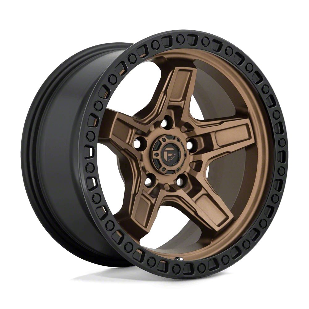 Fuel Wheels Kicker Matte Bronze with Black Bead Ring Wheel; 17x9 The Fuel Wheels Kicker Matte Bronze with Black Bead Ring Wheel combines a sleek, sophisticated design with premium construction that enhances the visual appeal and complements a wide range of vehicle styles. This wheel is perfect for those seeking to make a bold statement while maintaining elegance and robustness.
