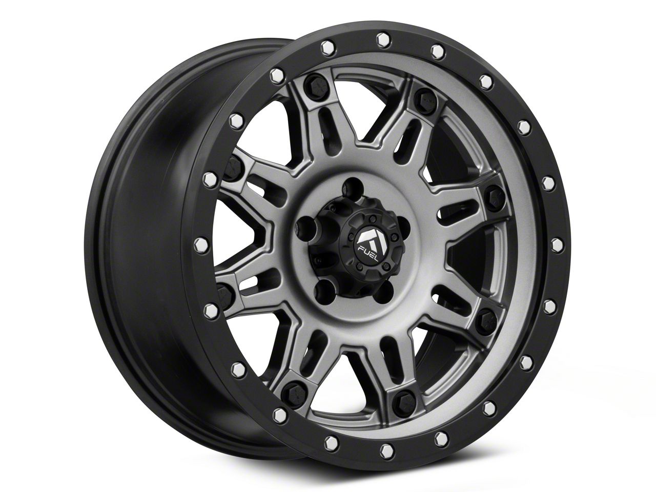 Fuel Wheels Hostage III Gunmetal and Black Wheel; 18x9 exudes an aesthetic allure that complements a range of vehicle styles. With its design rooted in Fuel Wheels craftsmanship, this wheel accentuates your vehicle's elegant stance.