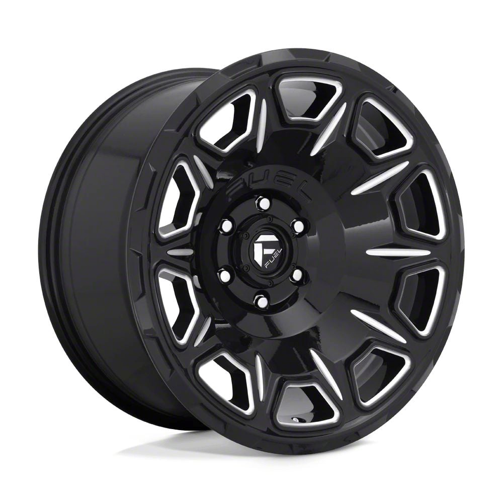 Fuel Wheels Vengeance Gloss Black Milled Wheel; 20x10 The Fuel Wheels Vengeance Gloss Black Milled Wheel combines a sleek, sophisticated design with premium construction that enhances the visual appeal and complements a wide range of vehicle styles. This wheel is perfect for those seeking to make a bold statement while maintaining elegance and robustness.