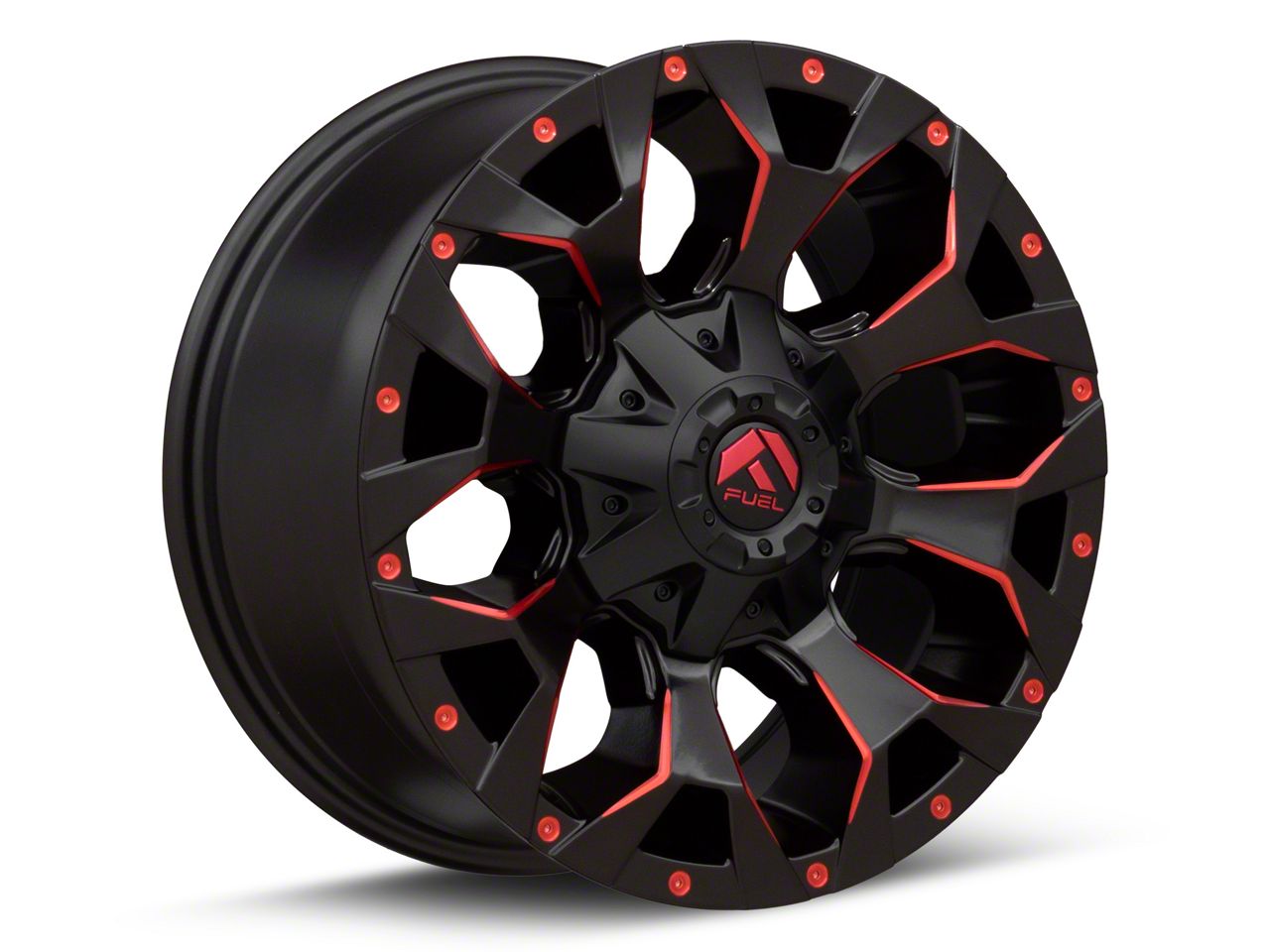 The 22x12 Fuel Wheels Assault Matte Black Red Milled Wheel is completed in a high-quality matte black finish with red milled accents for an aggressive appearance that will turn heads. This wheel features a durable clear coat that stands up to the hazards of everyday driving.