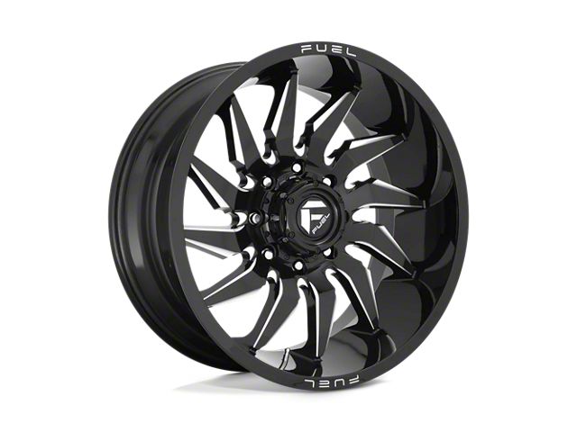 The 22x10 Fuel Wheels Saber Gloss Black Milled Wheel is completed in a high-quality gloss black finish with steel milled accents for an aggressive appearance that will turn heads. This wheel features a durable clear coat that stands up to the hazards of everyday driving.