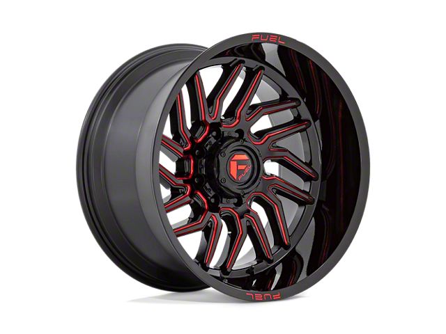 Fuel Wheels Hurricane Gloss Black Milled with Red Tint Wheel; 20x9 The Fuel Wheels Hurricane Gloss Black Milled with Red Tint Wheel combines a sleek, sophisticated design with premium construction that enhances the visual appeal and complements a wide range of vehicle styles. This wheel is perfect for those seeking to make a bold statement while maintaining elegance and robustness.