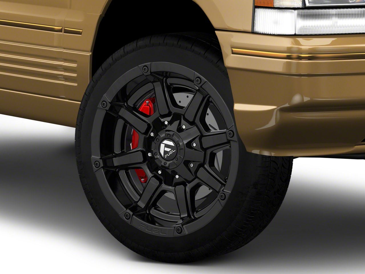 The 20x9 Fuel Wheels Coupler Gloss Black Wheel; 20x9 is coated with a specially formulated gloss black finish. It protects the entire wheel against corrosion, while adding a stunning appeal to your ride’s appearance.
