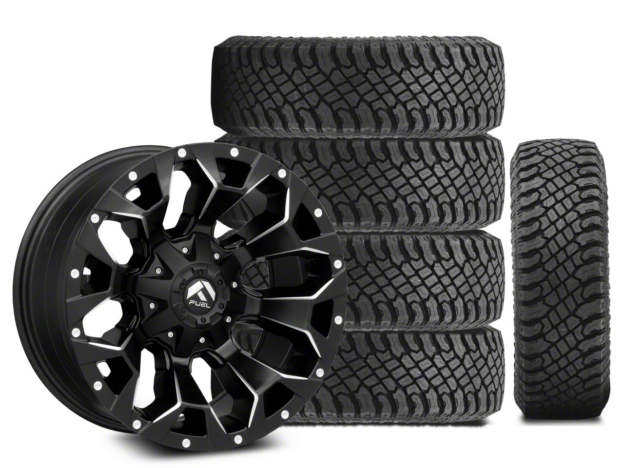 Application. This 18x9 Fuel Wheels Assault & Atturo All-Terrain Trail Blade X/T Tire Package; Set of 5 is designed to fit 2018-2024 Jeep Wrangler JL models.