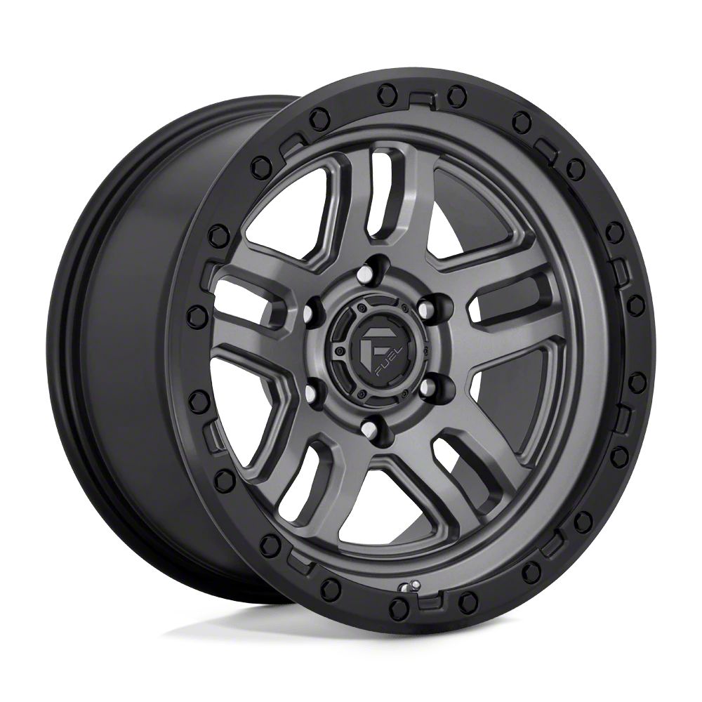 The 17x9 Fuel Wheels Ammo Matte Gunmetal with Black Bead Ring Wheel is completed in a high-quality matte gunmetal finish with accents for an aggressive appearance that will turn heads. This wheel features a durable clear coat that stands up to the hazards of everyday driving.