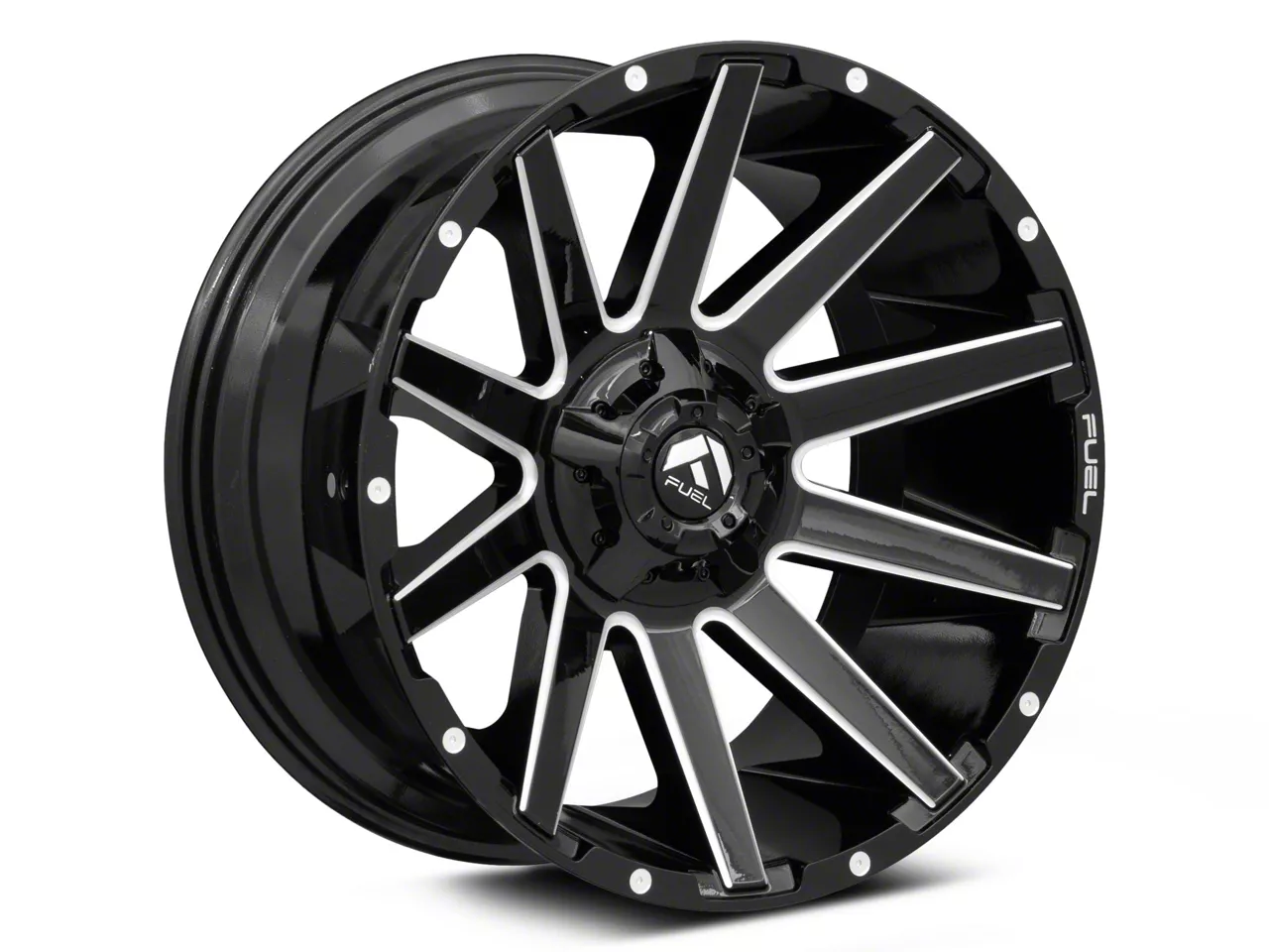 The 22x10 Fuel Wheels Contra Gloss Black Milled Wheel is completed in a high-quality gloss black finish with steel milled accents for an aggressive appearance that will turn heads. This wheel features a durable clear coat that stands up to the hazards of everyday driving.