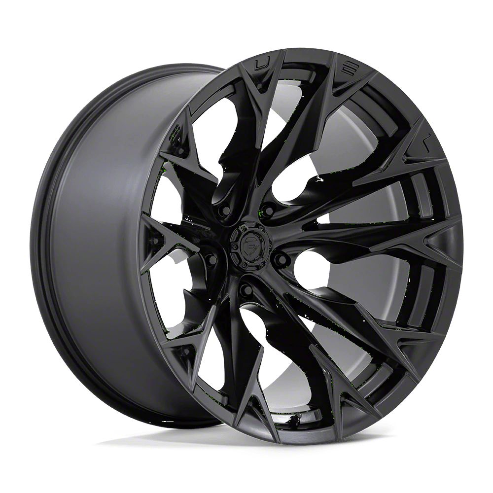 Fuel Wheels Flame Blackout Wheel; 22x12 The Fuel Wheels Flame Blackout Wheel combines a sleek, sophisticated design with premium construction that enhances the visual appeal and complements a wide range of vehicle styles. This wheel is perfect for those seeking to make a bold statement while maintaining elegance and robustness.