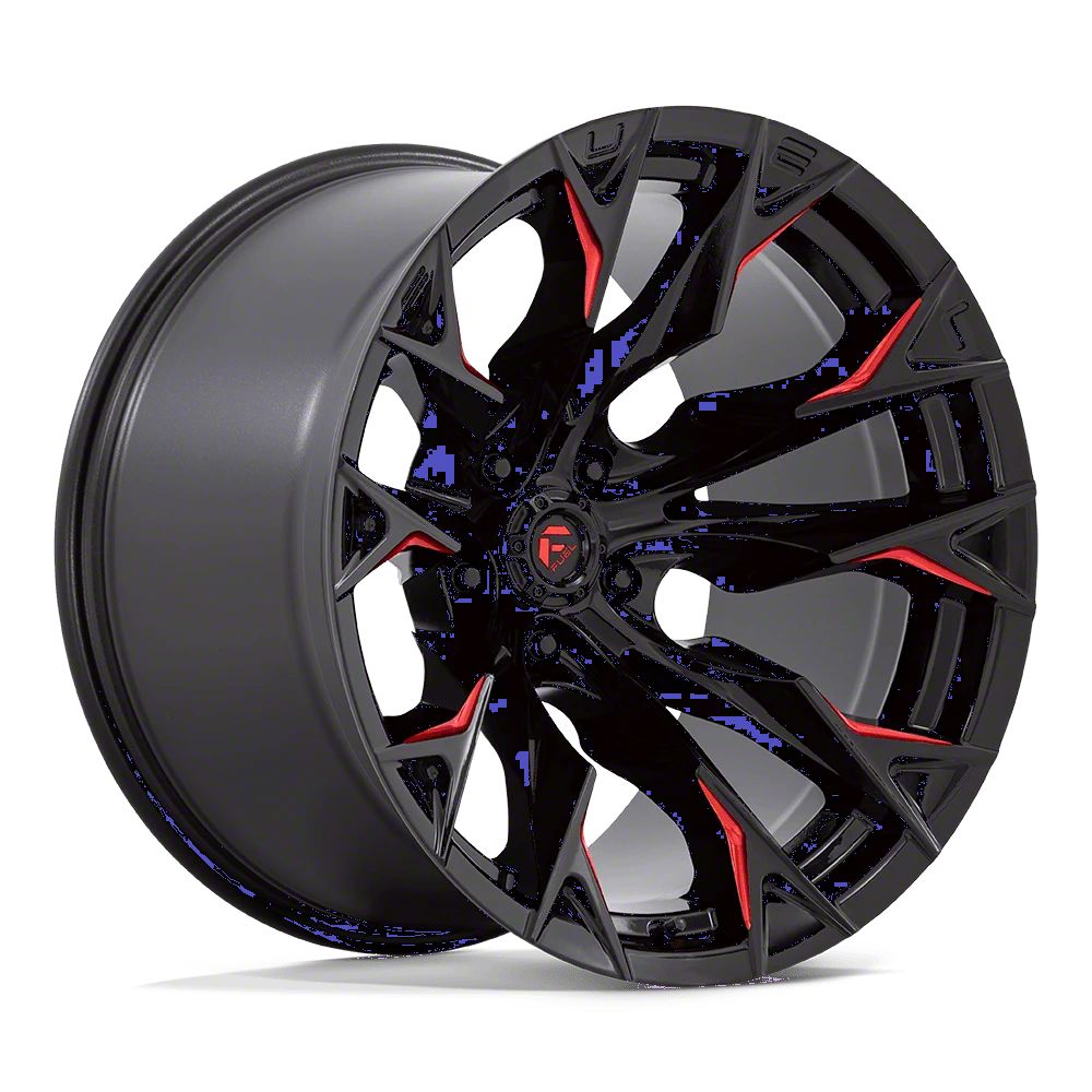 Fuel Wheels Flame Gloss Black Milled with Candy Red Wheel; 20x12 The Fuel Wheels Flame Gloss Black Milled with Candy Red Wheel combines a sleek, sophisticated design with premium construction that enhances the visual appeal and complements a wide range of vehicle styles. This wheel is perfect for those seeking to make a bold statement while maintaining elegance and robustness.