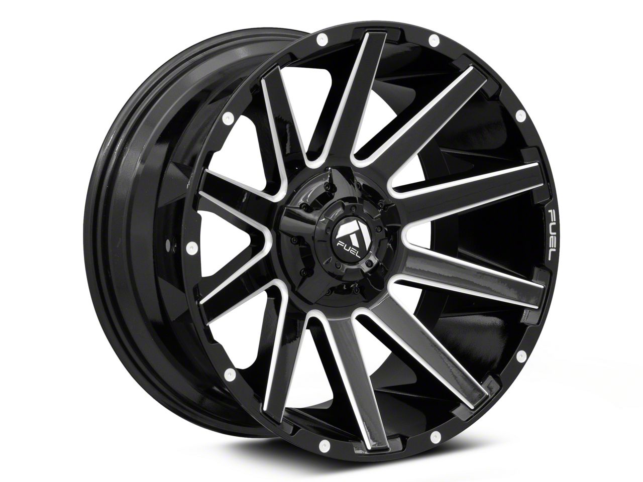 The 18x9 Fuel Wheels Contra Gloss Black Milled Wheel is completed in a high-quality gloss black finish with steel milled accents for an aggressive appearance that will turn heads. This wheel features a durable clear coat that stands up to the hazards of everyday driving.