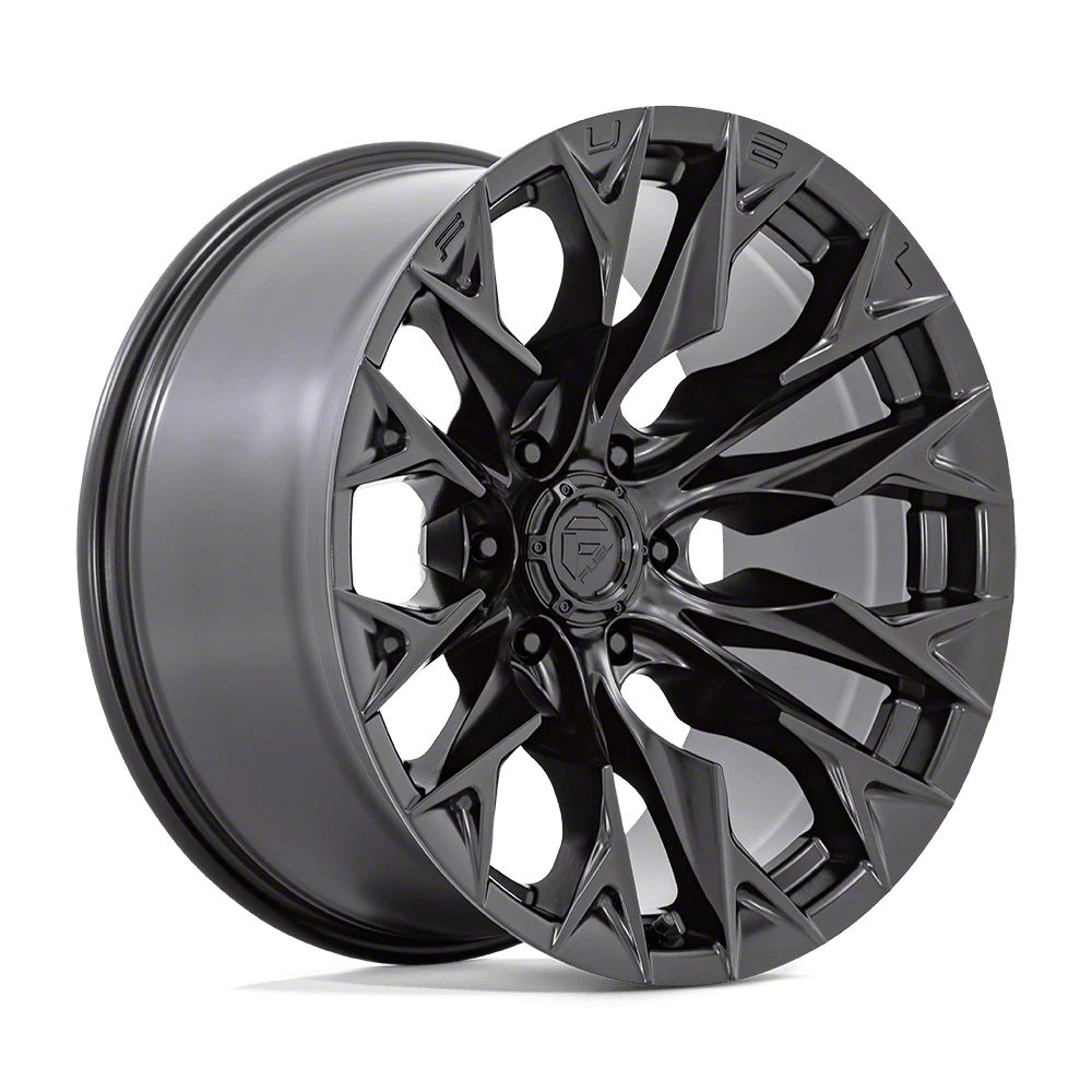 Fuel Wheels Flame Blackout Wheel; 24x12 The Fuel Wheels Flame Blackout Wheel combines a sleek, sophisticated design with premium construction that enhances the visual appeal and complements a wide range of vehicle styles. This wheel is perfect for those seeking to make a bold statement while maintaining elegance and robustness.