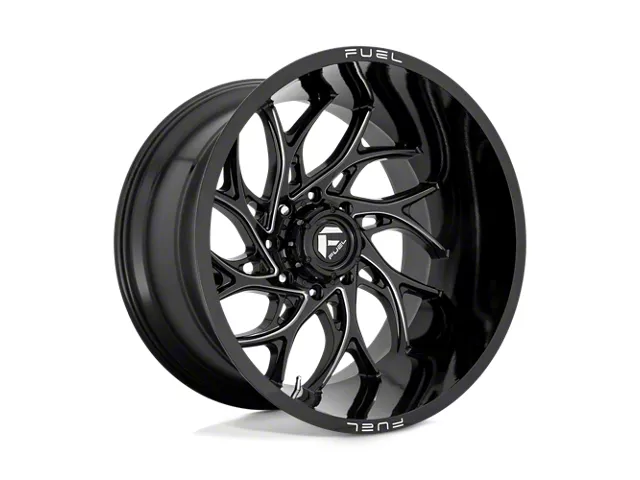 Fuel Wheels Runner Gloss Black Milled Wheel; 24x12 The Fuel Wheels Runner Gloss Black Milled Wheel combines a sleek, sophisticated design with premium construction that enhances the visual appeal and complements a wide range of vehicle styles. This wheel is perfect for those seeking to make a bold statement while maintaining elegance and robustness.