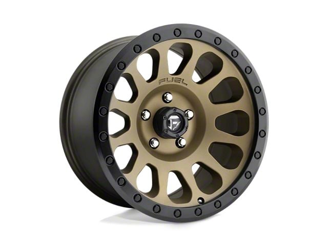 Fuel Wheels Vector Matte Bronze with Black Bead Ring Wheel; 17x9 The Fuel Wheels Vector Matte Bronze with Black Bead Ring Wheel combines a sleek, sophisticated design with premium construction that enhances the visual appeal and complements a wide range of vehicle styles. This wheel is perfect for those seeking to make a bold statement while maintaining elegance and robustness.