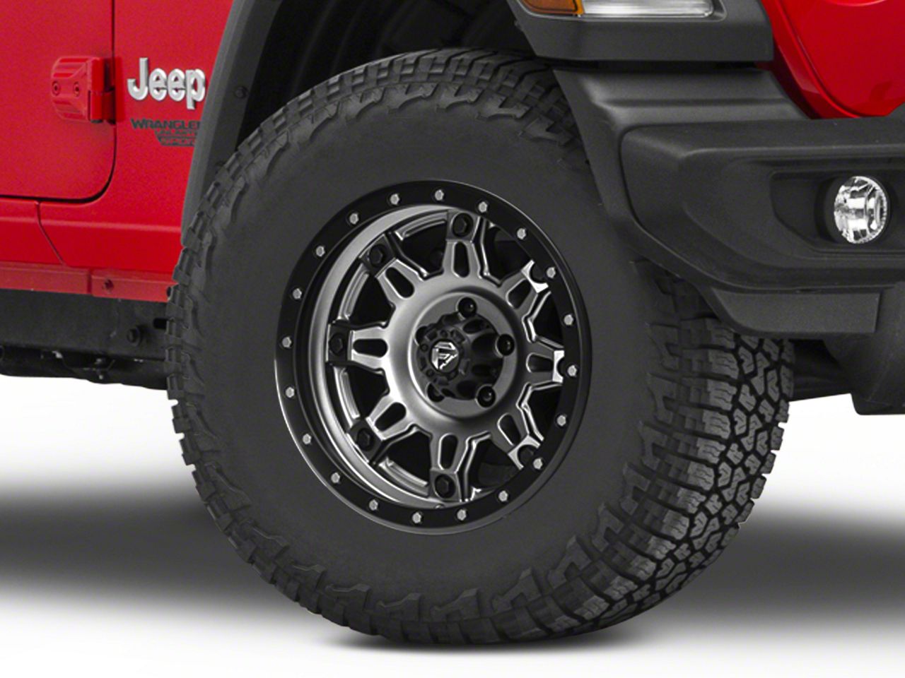 Application. This Fuel Wheels Hostage III Gunmetal and Black Wheel; 17x9 with a backspace of 5.04 Inch, 128.1mm and bolt pattern of 5 x 127mm (5 x 5-Inch) ensures impeccable alignment and driving stability. It's designed to fit the 18-23 Jeep Wrangler JL models, sold individually.