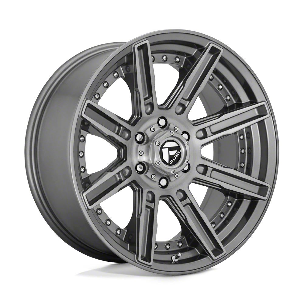 The 20x10 Fuel Wheels Rogue Platinum Brushed Gunmetal with Tinted Clear Wheel is completed in a high-quality brushed gunmetal finish with contrasting accents for an aggressive appearance that will turn heads. This wheel features a durable clear coat that stands up to the hazards of everyday driving.