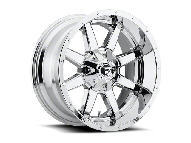 Fuel Wheels Maverick Chrome Wheel; 20x12. The Fuel Wheels Maverick Chrome Wheel offers a striking balance of style and refinement. Its unique design accentuates the vehicle's aesthetic, while the premium construction underscores its robust nature. This wheel is a perfect choice for those seeking both elegance and a strong visual statement.