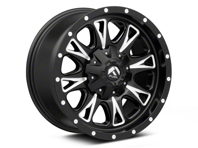 Fuel Wheels Throttle Matte Black Milled Wheel; 20x10. The Fuel Wheels Throttle Matte Black Milled Wheel offers a striking balance of style and refinement. Its unique design accentuates the vehicle's aesthetic, while the premium construction underscores its robust nature. This wheel is a perfect choice for those seeking both elegance and a strong visual statement.