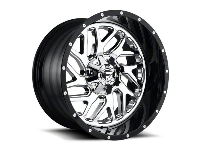 Fuel Wheels Triton Chrome with Gloss Black Lip Wheel; 20x10. The Fuel Wheels Triton Chrome with Gloss Black Lip Wheel offers a striking balance of style and refinement. Its unique design accentuates the vehicle's aesthetic, while the premium construction underscores its robust nature. This wheel is a perfect choice for those seeking both elegance and a strong visual statement.