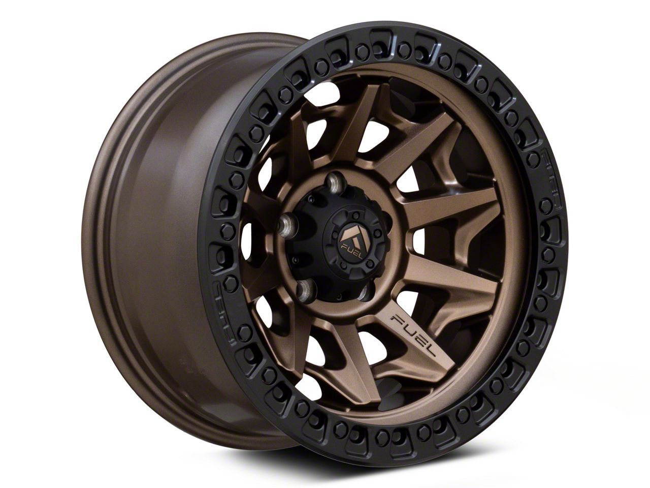 Fuel Wheels Covert Matte Bronze with Black Bead Ring Wheel; 15x8 The Fuel Wheels Covert Matte Bronze with Black Bead Ring Wheel combines a sleek, sophisticated design with premium construction that enhances the visual appeal and complements a wide range of vehicle styles. This wheel is perfect for those seeking to make a bold statement while maintaining elegance and robustness.