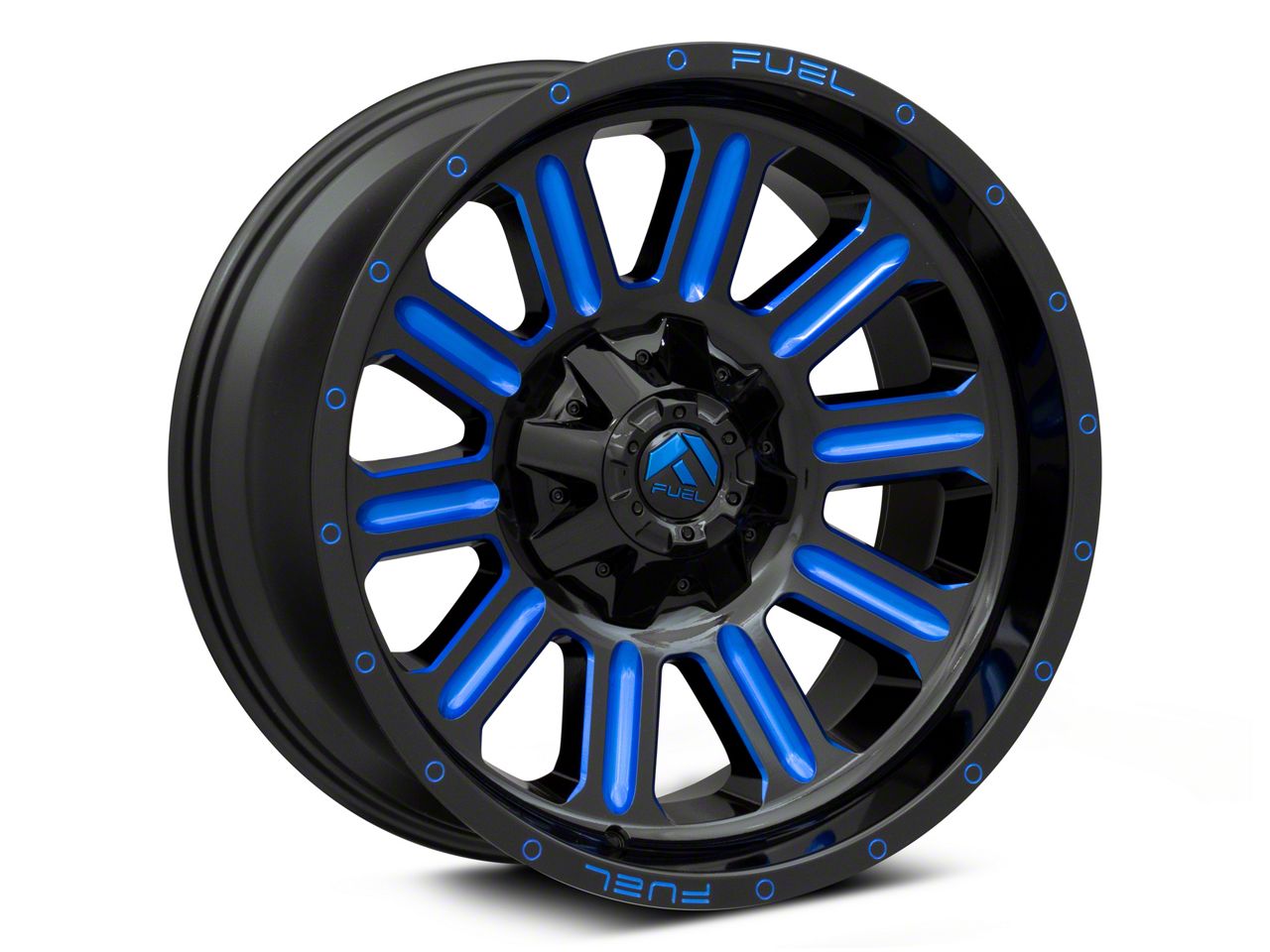 Fuel Wheels Hardline Gloss Black with Blue Tinted Clear Wheel; 20x10 is a representation of Fuel Wheels' commitment to superior design and craftsmanship. The wheel showcases a unique aesthetic appeal, emphasizing its premium nature. Perfect for those looking to enhance their vehicle's appearance, this wheel complements various vehicle styles without overpowering them.
