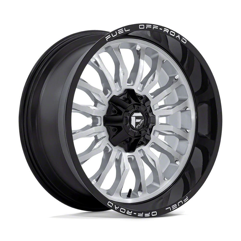 Fuel Wheels Arc Silver Brushed Face with Milled Black Lip 6-Lug Wheel; 22x10; -18mm Offset The Fuel Wheels Arc Silver Brushed Face with Milled Black Lip 6-Lug Wheel combines a sleek, sophisticated design with premium construction that enhances the visual appeal and complements a wide range of vehicle styles. This wheel is perfect for those seeking to make a bold statement while maintaining elegance and robustness.