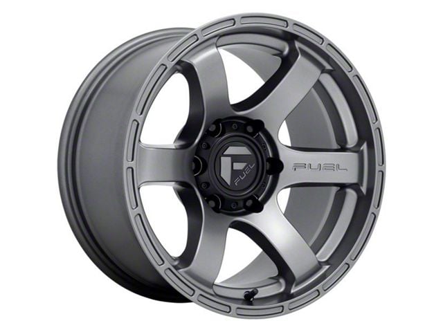 Fuel Wheels Rush Matte Gunmetal 6-Lug Wheel; 18x9; -12mm Offset - This wheel's elegant design will certainly enhance your vehicle's aesthetic, complementing its luxury and performance. The unique styling of this wheel makes it an ideal choice for a standout quality of your ride, reflecting the premium quality associated with the Fuel Wheels brand.