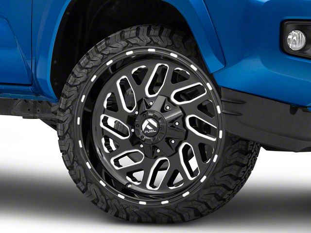 Application. This Fuel Wheels Triton Gloss Black Milled 6-Lug Wheel; 26x12; -44mm Offset, with a backspace of 4.768 Inch, 121.1mm and bolt pattern of 6 x 139.7mm (6 x 5.5-Inch), is designed to provide not only a striking visual appeal but also to contribute significantly to the alignment and driving stability of the vehicle. Its specifications ensure a precise fit with the vehicle model, enhancing the overall driving experience. Built to fit the 2016-2023 Tacoma, this wheel is sold individually.