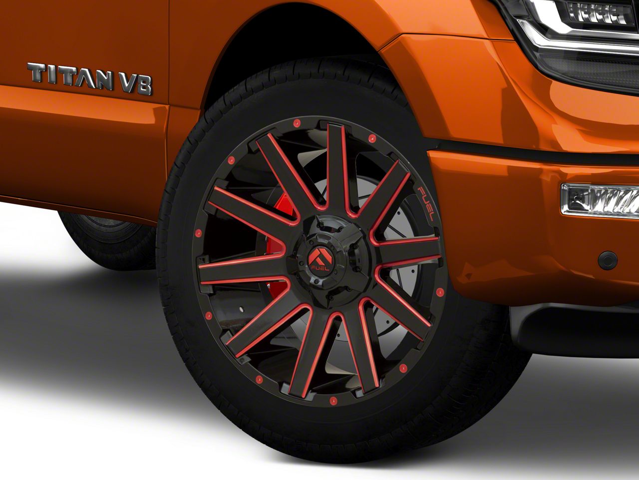Application. The Fuel Wheels Contra Gloss Black with Red Tinted Clear 6-Lug Wheel; 22x12; -43mm Offset, with a backspace of 4.808 Inch, 122.2mm and a bolt pattern of 6 x 139.7mm (6 x 5.5-Inch), is designed to enhance alignment and stability for a smooth driving experience. Specifically tailored to fit 2017-2024 Titan models, it ensures a perfect blend of style and functionality. Sold individually, this wheel is an ideal upgrade for your vehicle.