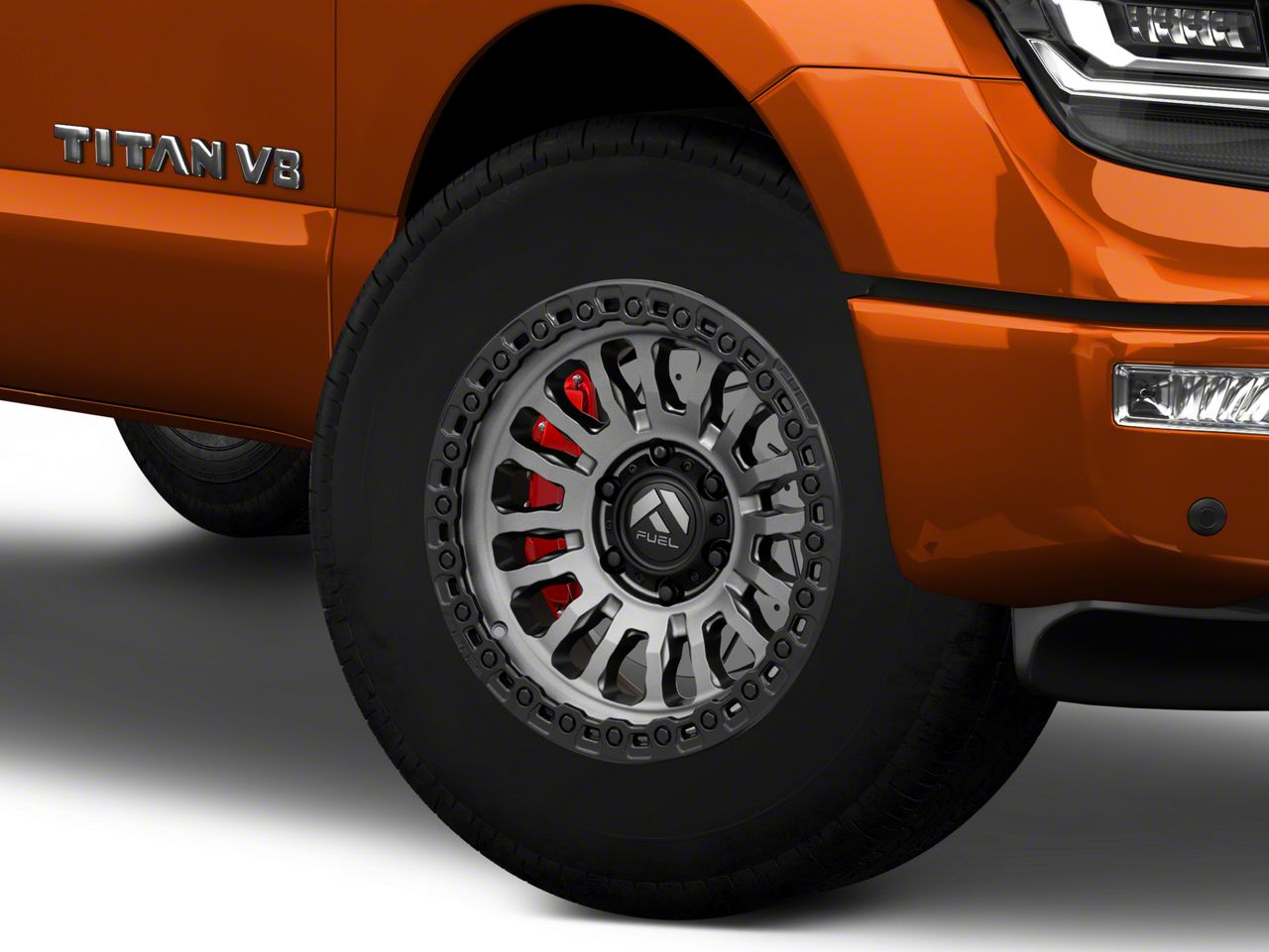 Application. This Fuel Wheels Rincon Matte Gunmetal with Matte Black Lip 6-Lug Wheel; 18x9; -12mm Offset with a backspace of 4.528 Inch, 115mm; and bolt pattern of 6 x 139.7mm (6 x 5.5-Inch) contributes to impeccable alignment and driving stability. Designed to fit 2017-2024 Titan models, sold individually.