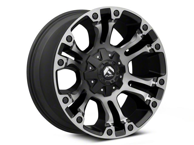 Fuel Wheels Vapor Matte Black with Gray Tint 6-Lug Wheel; 18x9; 19mm Offset exudes a captivating aesthetic appeal that seamlessly complements various vehicle styles. The craftsmanship of Fuel Wheels ensures a robust and premium feel, making it a standout choice for discerning drivers.