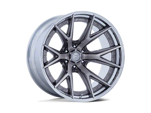 The 22x12 Fuel Wheels Fusion Forged Catalyst Platinum with Chrome Lip 6-Lug Wheel; 22x12; -44mm Offset is completed in a high quality platinum finish with a bright chrome lip for striking contrast in appearance that everyone will envy.